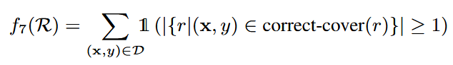 覆盖率:当知道一条规则适用于哪些数据点,便可以更好的理解模型。定义:对于规则r=(s,c),cover(r)=数据集中所有满足规则r的数据点的集合。