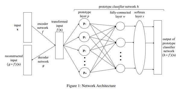 该网络由三部分组成:自编码器、原型层、全连接层。