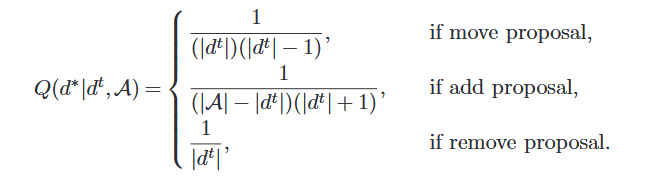 最后,在模型参数推断阶段,需要确定规则列表中各项参数(如规则的权重、条件概率的阈值),通常采用 Metropolis - Hastings 算法来实现。该算法通过在模型参数的可能取值空间中进行随机采样,并根据一定的接受准则来决定是否接受新的采样值,从而逐步逼近最优的参数估计。随机采样是对d进行采样,从当前的