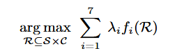 有了这些属性后,利用它们来定义目标函数,并把目标函数分为七个部分,将这七个部分加权求和作为最终的目标函数,各个部分表示如下: