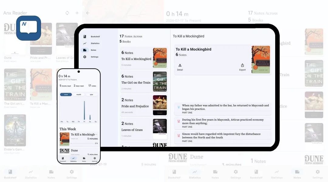 客户端项目 21、anx-reader :免费的 Android 电子书阅读器。这是一款用 Flutter 编写的电子书阅读软件,它免费且没广告,支持 WebDAV 同步电子书、笔记和阅读进度,适用于 Android 手机和平板电脑。