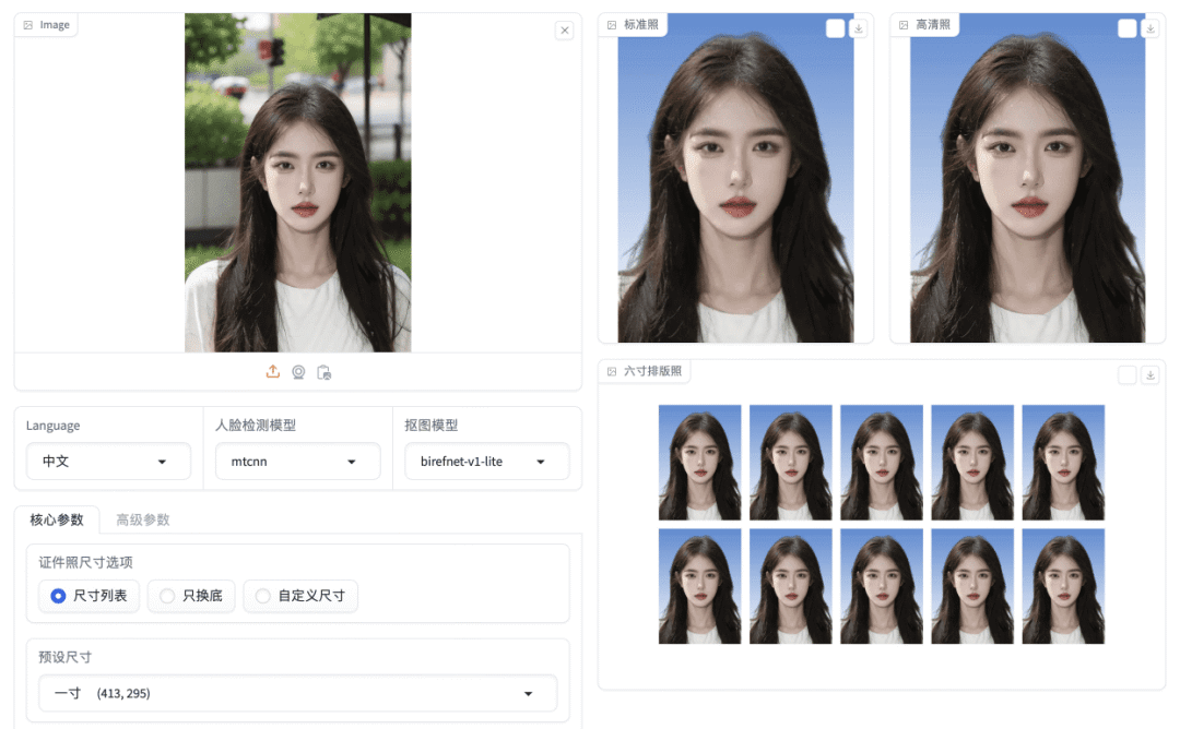4、轻量级的 AI 证件照制作工具 这是一款简单易用的 AI 证件照制作工具,能够生成标准证件照和六寸排版照。它提供了简洁的 Web 界面和 API 服务,即使在没有 GPU 的电脑上也能够运行,支持抠图、尺寸调整和自定义底色等功能。