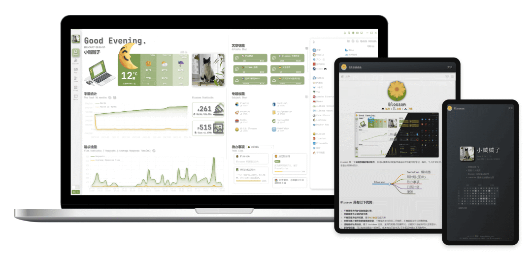 14、blossom :私有部署的云端双链笔记软件。这是一个支持私有部署的云端存储双链笔记软件,可以将你的所有笔记、图片、个人计划安排保存在私有服务器上,并实现跨设备的实时同步。它提供 Markdown 编辑、双链笔记、全量备份、网页转换、多账号权限和统计等功能,兼容 Windows、macOS 和网页客户端。