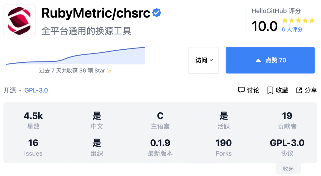 GitHub 地址→github.com/RubyMetric/chsrc