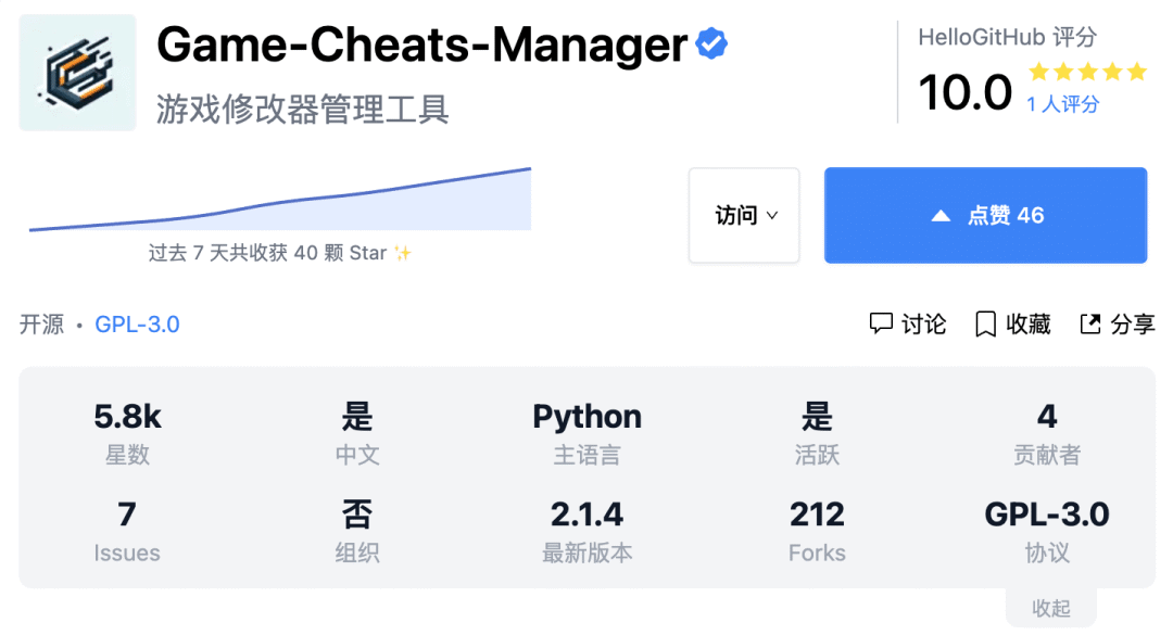 GitHub 地址→github.com/dyang886/Game-Cheats-Manager