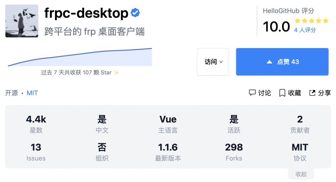 GitHub 地址→github.com/luckjiawei/frpc-desktop