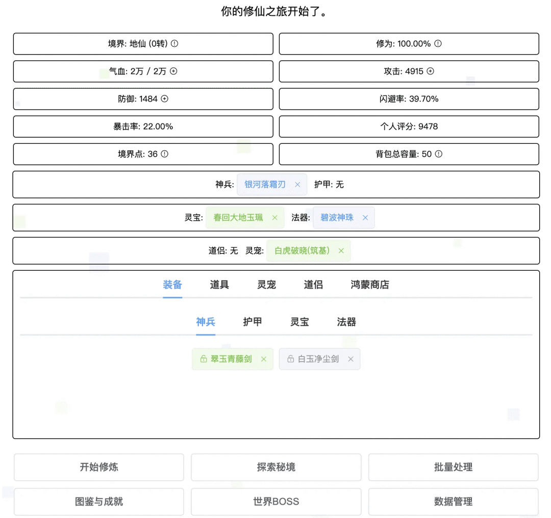 6、开源的文字修仙游戏 这是一个基于 Vue.js 开发的修仙模拟器,互动式的文字游戏,适合喜欢放置类和修仙题材游戏的玩家。