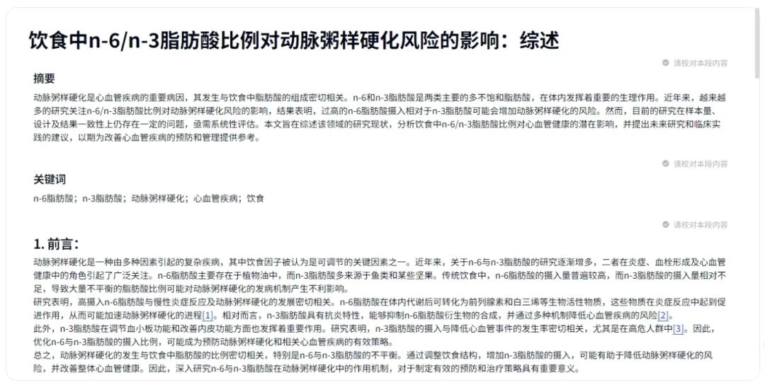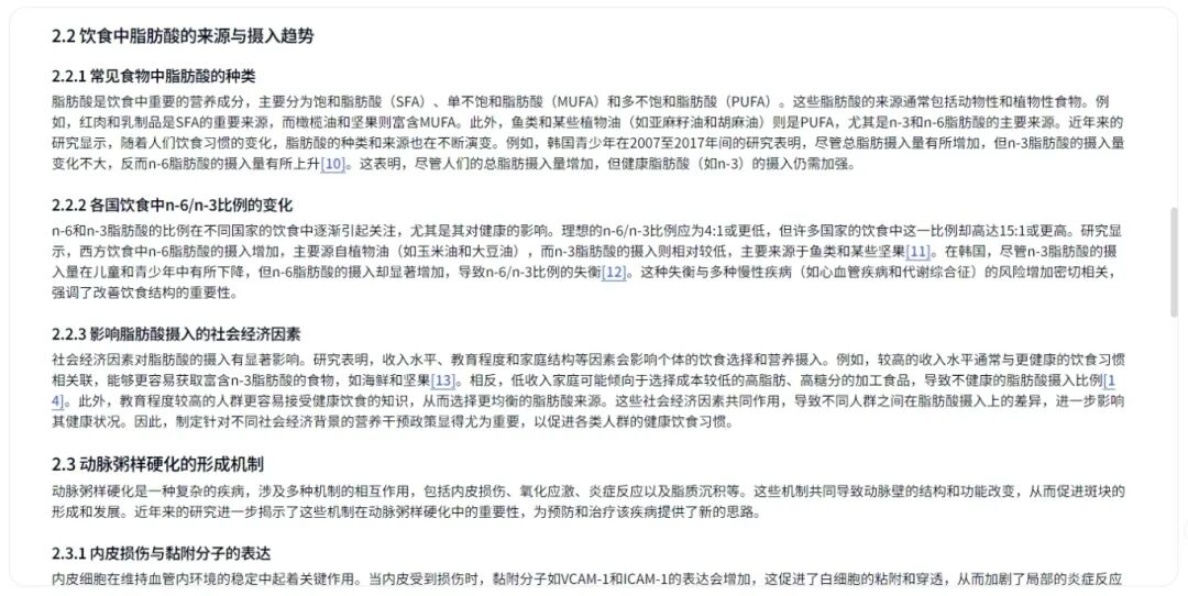 以“饮食中n-6/n-3脂肪酸比例对动脉粥样硬化风险的影响:综述”为综述主题,进行实操后,我们可以发现:
