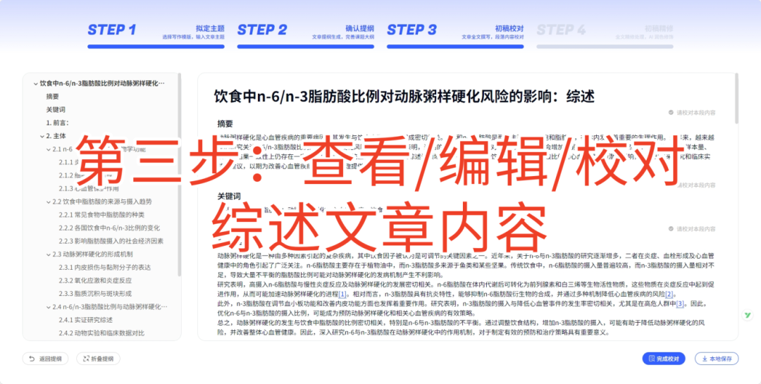 只需四步,点点点,即可快速生成一篇综述!并提供本地保存功能,以word的形式输出。