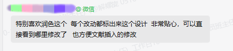 这一设计也深受小伙伴的喜爱,表示:非常贴心,可以直接看到哪里修改了,也方便文献插入的修改
