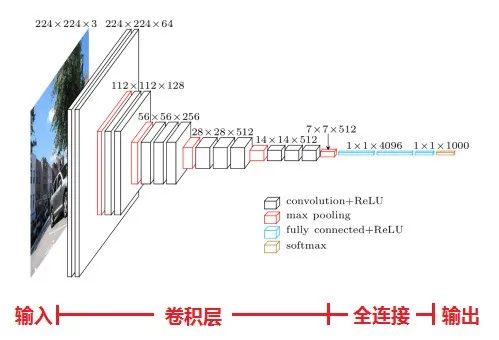AlexNet在LeNet的基础上增加了3个卷积层。但AlexNet作者对它们的卷积窗口、输出通道数和构造顺序均做了大量的调整。虽然AlexNet指明了深度卷积神经网络可以取得出色的结果,但并没有提供简单的规则以指导后来的研究者如何设计新的网络。VGG,它的名字来源于论文作者所在的实验室Visual Geometry Group。VGG提出了可以通过重复使用简单的基础块来构建深度模型的思路。VGG的结构图如下: