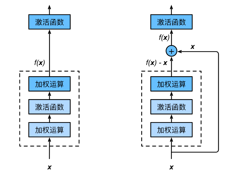 深度学习的问题:深度CNN网络达到一定深度后再一味地增加层数并不能带来进一步地分类性能提高,反而会招致网络收敛变得更慢,准确率也变得更差。- - -残差块(Residual Block)恒等映射: