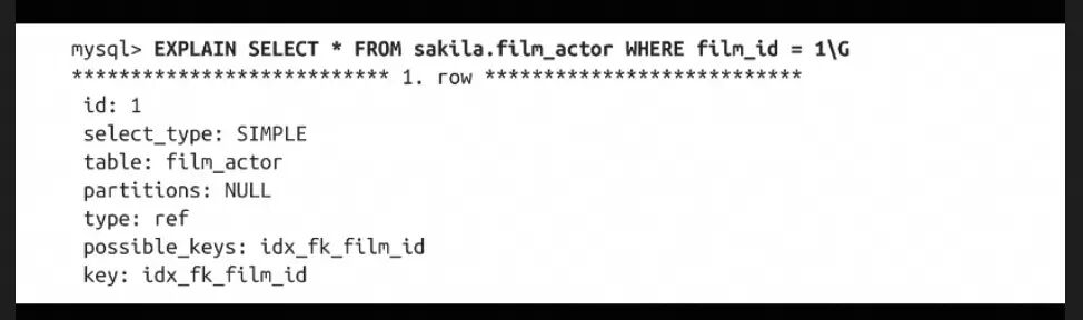 我们看一下示例数据库Sakila中的一个查询案例:select * from film_actor where film_id = 1 -- film_id列有索引