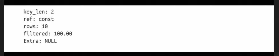 - 从数据表中返回数据,然后过滤不满足条件的记录(在Extra列中出现Using where)。这在MySQL服务器层完成,MySQL需要先从数据表中读出记录然后过滤。