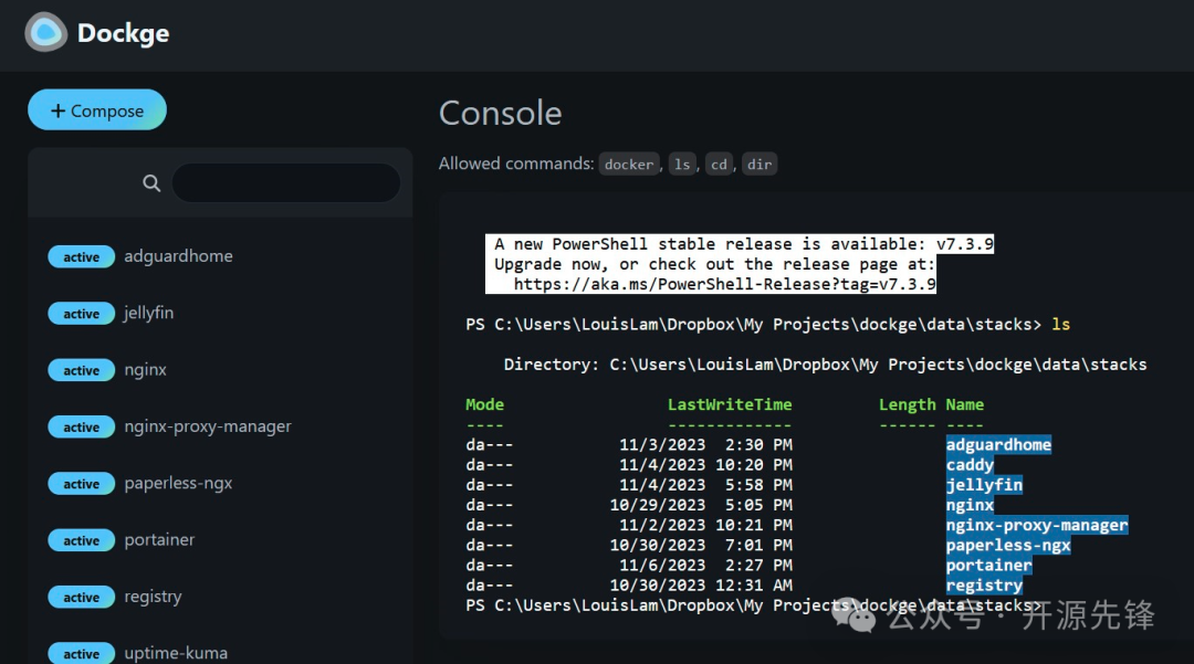 - 实时反馈和交互编辑:Dockge支持对compose文件的交互式编辑,你可以实时看到编辑结果,无需频繁保存和刷新。同时,终端的输出也会实时展示,让你随时掌握容器的运行状态。