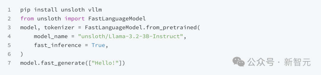 现在,在微调流程中,可以直接使用vLLM,这使得模型的吞吐量大幅提升,并且可以同时进行微调和推理。在1x A100 40GB GPU上,使用Unsloth动态4bit量化的Llama 3.2 3B Instruct,吞吐量大约为4000 tokens/s。在16GB Tesla T4(免费Colab GPU)上,吞吐量大约为300 tokens/s。而且,因为Unsloth还神奇地去除了vLLM和Unsloth一起加载时的双重内存使用,因此让Llama 3.1 8B节省了约5GB VRAM,让Llama 3.2 3B节约了3GB VRAM。Unsloth可以在单张48GB GPU上微调Llama 3.3 70B Instruct,其中Llama 3.3 70B的权重占用40GB VRAM。而如果不优化内存管理,同时加载Unsloth和vLLM,会导致VRAM双倍占用,从而需要至少80GB VRAM才能运行。- 安装vLLM和Unsloth:pip install unsloth vllm。