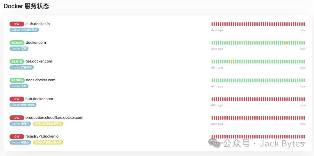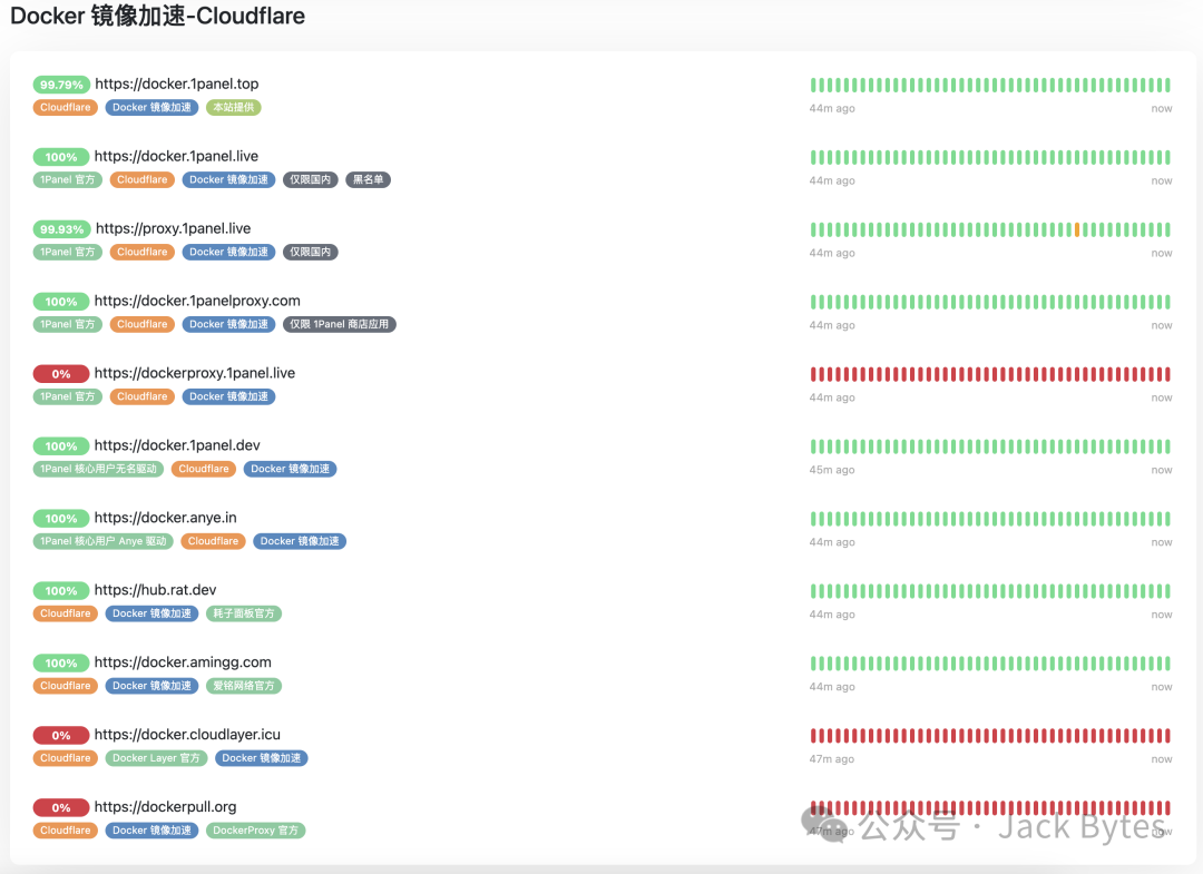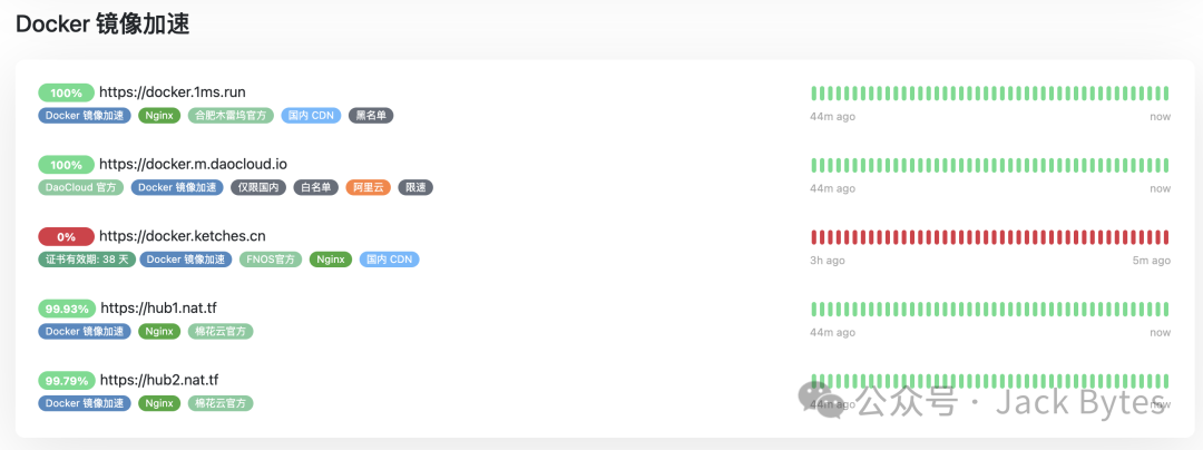 包含了一些镜像源的监控,绿色代表可用,红色代表不可用:
