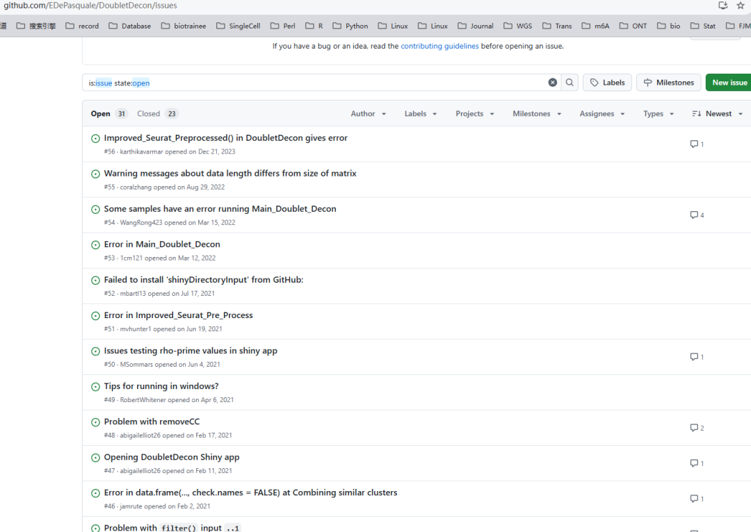 我搜了一下还有很多其他的过滤双细胞的软件,有一篇综述:《Benchmarking Computational Doublet-DetectionMethods for Single-Cell RNA Sequencing Data》,家人们这里介绍了9个软件呢!遇到了错误的软件不要紧,趁年轻早放弃、学习其他还在更新的软件!