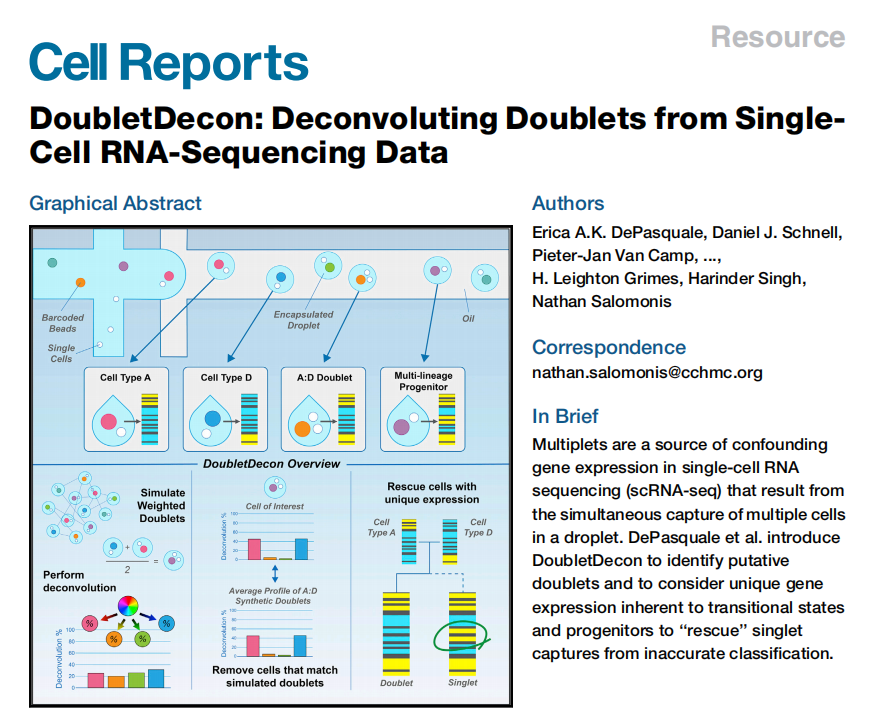 DoubletDecon 算法预测双细胞 这个软件于 2019 年 12 月 5 日 发表在 Cell Reports(IF=7.5),文献标题为:《DoubletDecon: Deconvoluting Doublets from SingleCell RNA-Sequencing Data》: