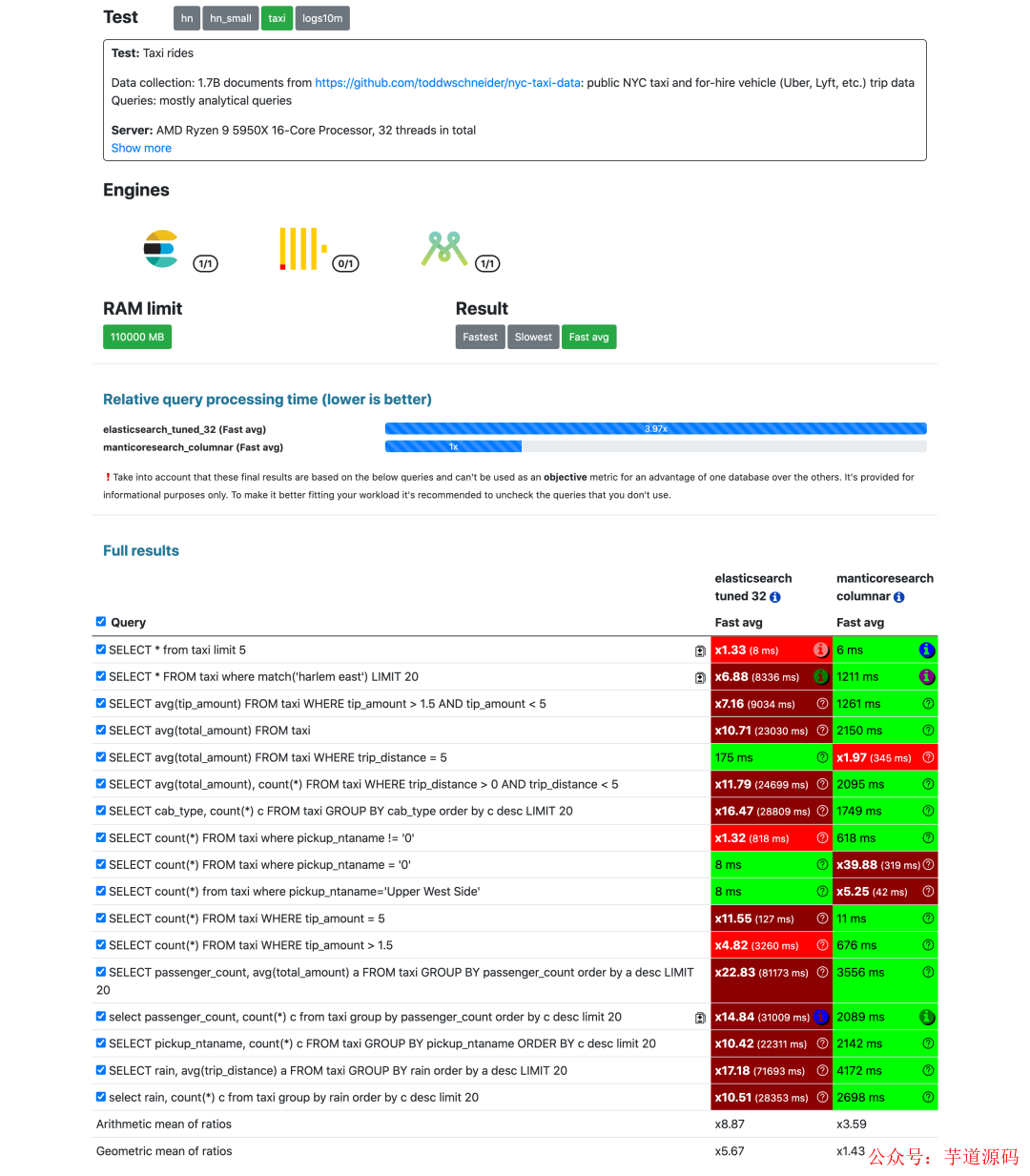 在一定的场景中,Manticore 比 Elasticsearch 快 15 倍!完整的测评结果,可以参考: