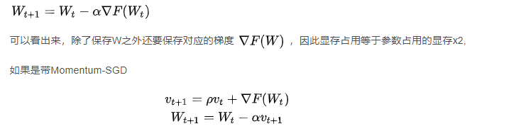 如果是Adam优化器,动量占用的显存更多,显存x4