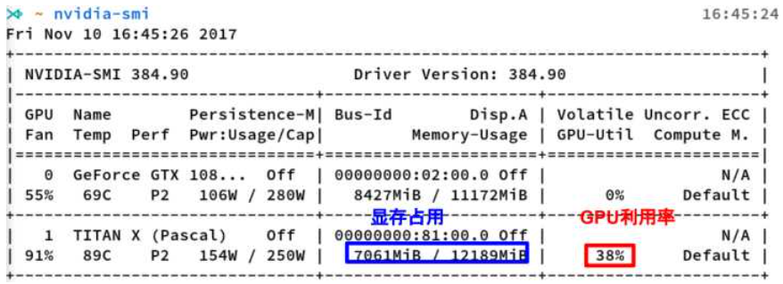 这是nvidia-smi命令的输出,其中最重要的两个指标: