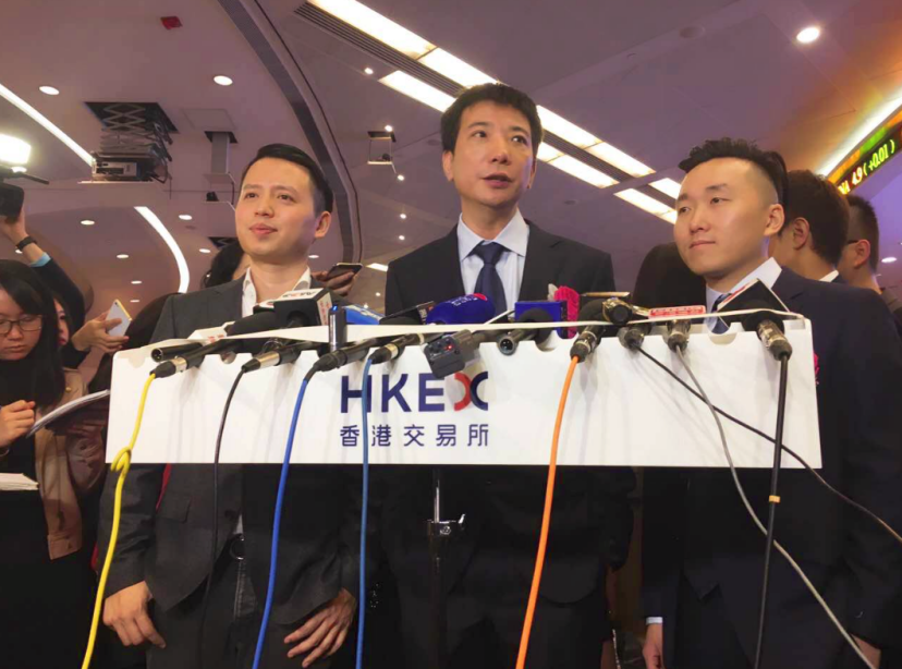 图片来源:港交所(左一吴欣鸿、左二蔡文胜)