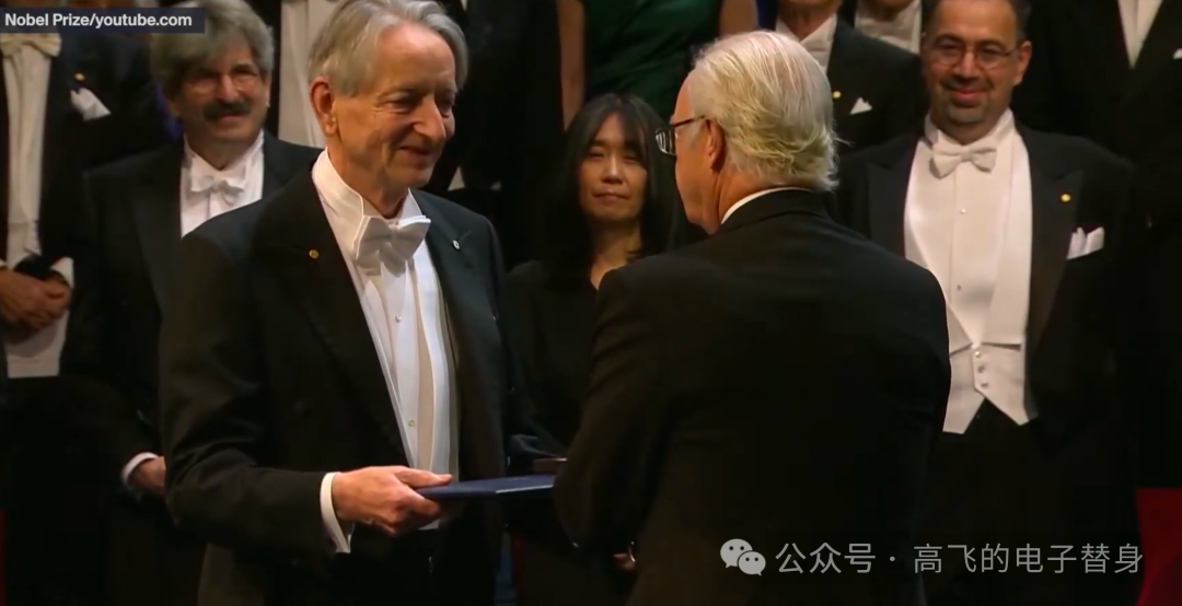 访谈开始,Paikin播放了一段视频,展示瑞典国王卡尔十六世·古斯塔夫在斯德哥尔摩为辛顿颁发诺贝尔奖的场景。当被问及这种荣誉带来的兴奋感何时会消退时,辛顿表示,这种感觉仍未完全消失。