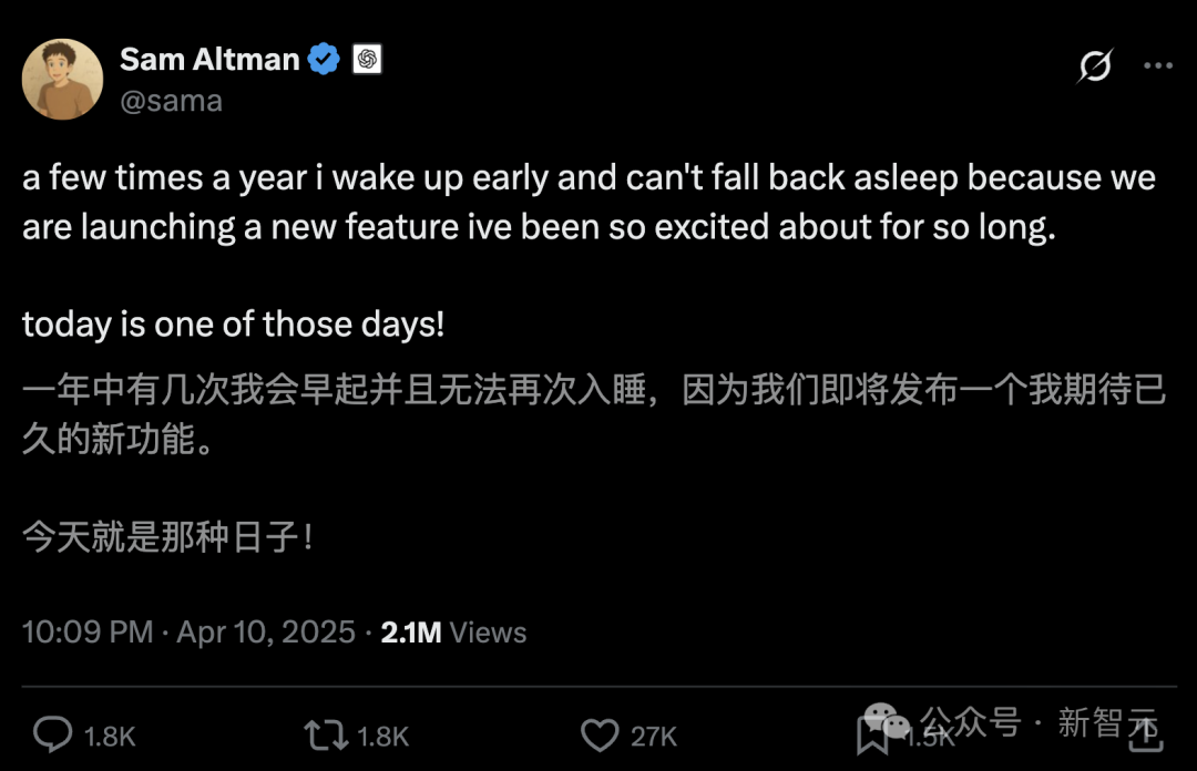 【新智元导读】ChatGPT记忆功能全新升级,让奥特曼昨晚激动到失眠。然而,更大惊喜在后面——GPT-4.1、o3、o4系模型或许将在下周发布。