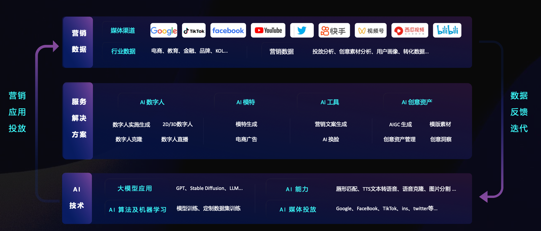 一站式解决出海企业从营销素材制作、营销数据分析到营销预算管理和云基础设施的数字化与智能化需求,为出海企业打造“云原生”的数字化发展底座,在全球市场实现增收增利。