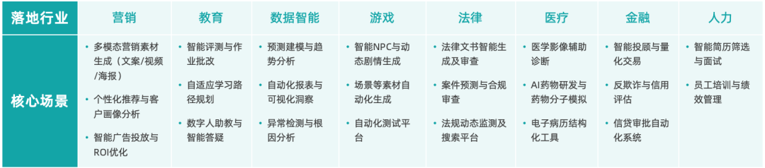 无论是以增量预训练还是后训练,行业垂直大模型能够通过领域知识提升模型-场景间的契合能力。同时,模块化架构(如MoE层和任务路由机制)使行业垂直模型能够进一步匹配具体的场景需求,帮助企业跨场景复用底层大模型,使AI应用从智能客服等单点效率工具(如智能客服)提升为全链路的生产力引擎。