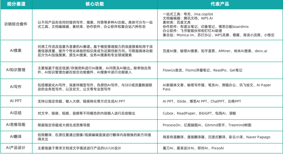 在此基础上,我们基于自研产品数据库、一手产品体验、底层逻辑分析等,选取了最具代表性和长期发展潜力的400+AI应用及企业,绘制了这份全景图谱。