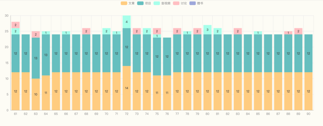 每期周刊中分享的内容基本上保持了“12 + 12 + x”的水平,即 12 篇文章&教程,12 个项目&资源,另外穿插有少量音视频和热门讨论内容。