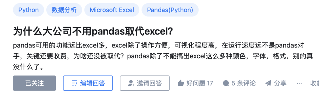 有人在知乎上提问:为什么大公司不用pandas取代excel?