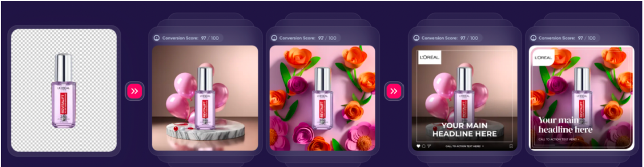 在AIGC的基础模型之上,其实各家推荐内容生成的要点主要在产品创新,比如广告创意的自动生成,利用产品图片和有限的人类输入的prompt,可以生成多样化的产品展示图和海报,然后交由广告推荐系统去自动选择。