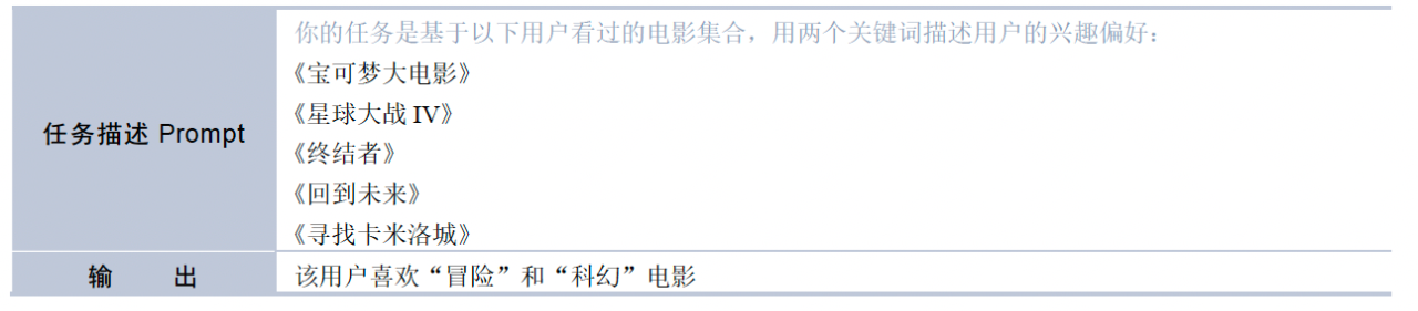 它的一般流程是,大模型先利用用户的历史行为推断出用户的基本兴趣画像。如下: