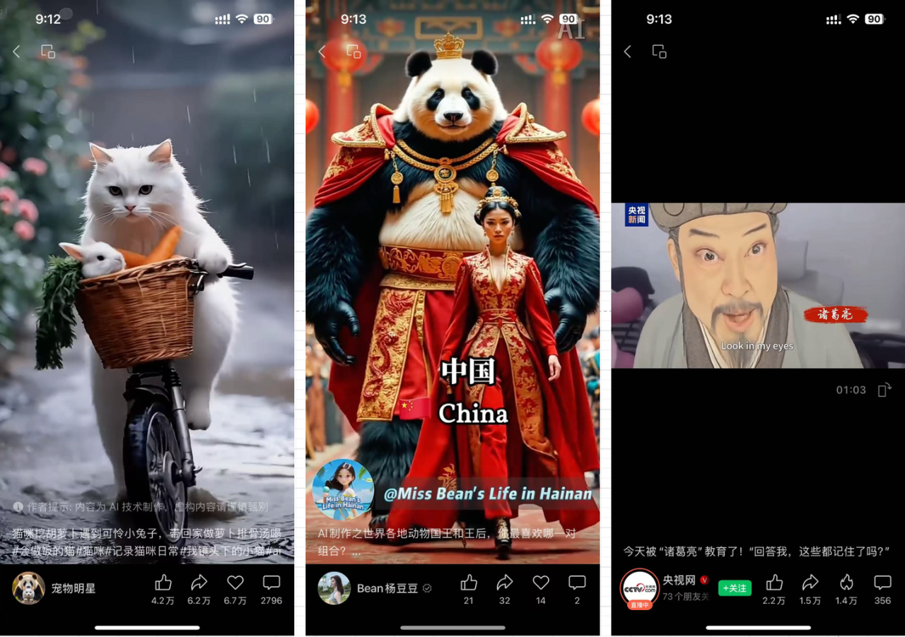 再比如,目前已经有一些模版化,规则化的AI生成视频,在短视频平台上取得了非常不错的点击量。我想下面一些AI生成的视频你一定刷到过。