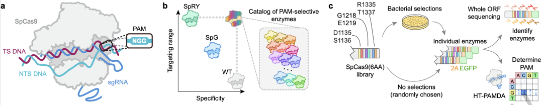 该文献的核心思路是:与其做“泛用型”Cas9,不如做“定制型”Cas9,即让每一个Cas9变体精准识别一个特定PAM,从而提升编辑效率并显著降低脱靶效应。