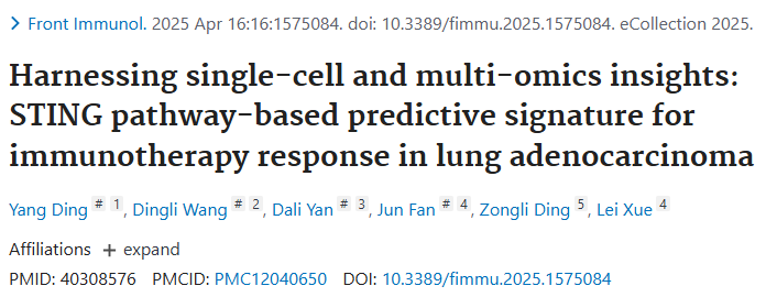 本研究整合了单细胞 RNA 测序数据和大规模转录组数据集,系统地探讨了 STING 信号通路在细胞间通讯和免疫机制中的作用。通过生物学分析,本研究增强了作者对 LUAD 中 STING 通路的理解,为肿瘤免疫微环境提供了新的视角,并为肿瘤诊断、治疗和个性化治疗的潜在应用奠定了基础。尽管具有科学价值和潜在应用,但该研究存在一定的局限性。首先,由于成本和样本可用性的限制,这项研究依赖于公共数据集而不是专有样本,这可能会限制某些人群结果的准确性。其次,实验验证是不可能的,因为一些结论仅基于计算分析。此外, 体内实验表明,STING 特征中的关键基因 ERRFI1 的缺失显着增强了抗肿瘤免疫力,并与 α-PD1 疗法表现出协同作用,以促进肿瘤控制。尽管如此,本研究构建的 STING 通路相关特征 (STINGsig) 具有重要的预后价值,可识别与免疫微环境相关的关键基因,并为 LUAD 的诊断和治疗提供有价值的见解。对这篇文章感兴趣的老师,欢迎扫码咨询!