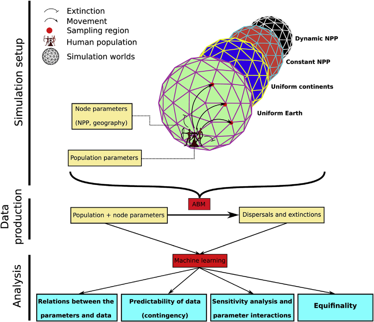Vahdati, A. R., Weissmann, J. D., Timmermann, A., de León, M. S. P., & Zollikofer, C. P. (2019). Drivers of Late Pleistocene human survival and dispersal: an agent-based modeling and machine learning approach. Quaternary Science Reviews, 221, 105867.