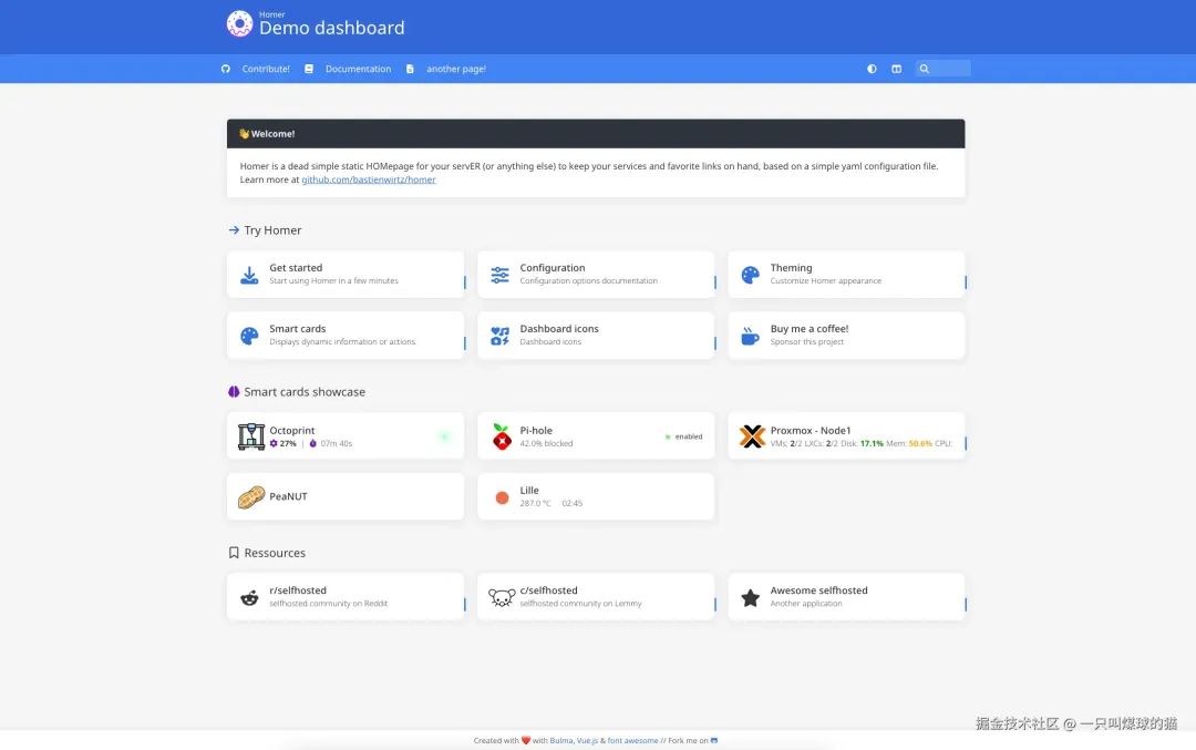 Homer 是一个简单而强大的个人主页生成器,适合用来展示你的各种服务和链接。