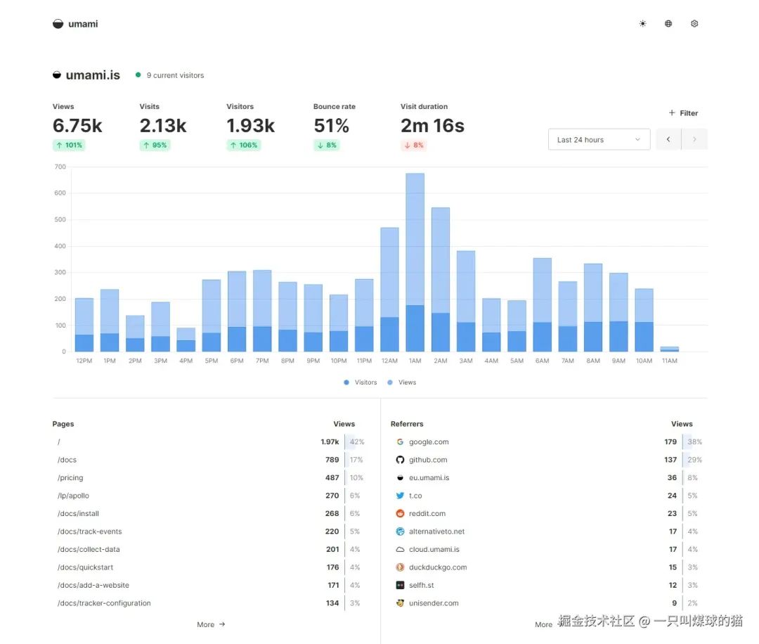 Umami 是一个开源的网站统计工具,可以用来分析网站的访问数据。