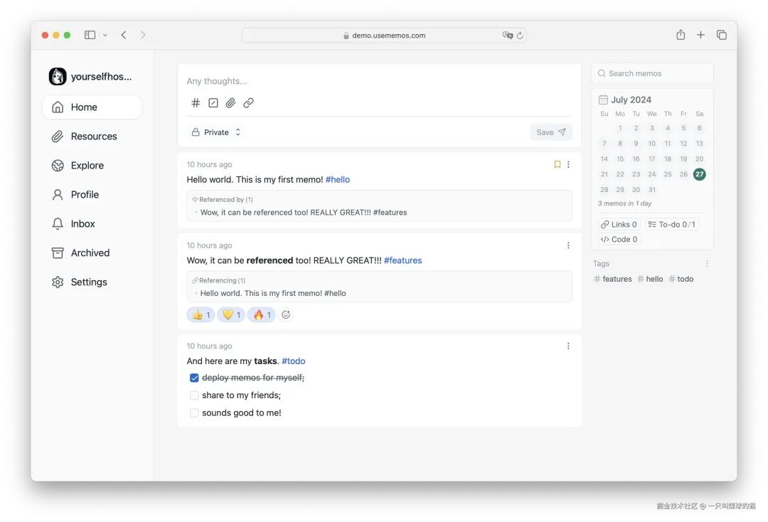 Memos 是一个轻量级的个人笔记工具,适合用来记录日常的想法和灵感。