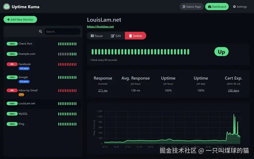Uptime-Kuma 是一个开源的服务监控工具,可以实时监控你的网站和服务状态。