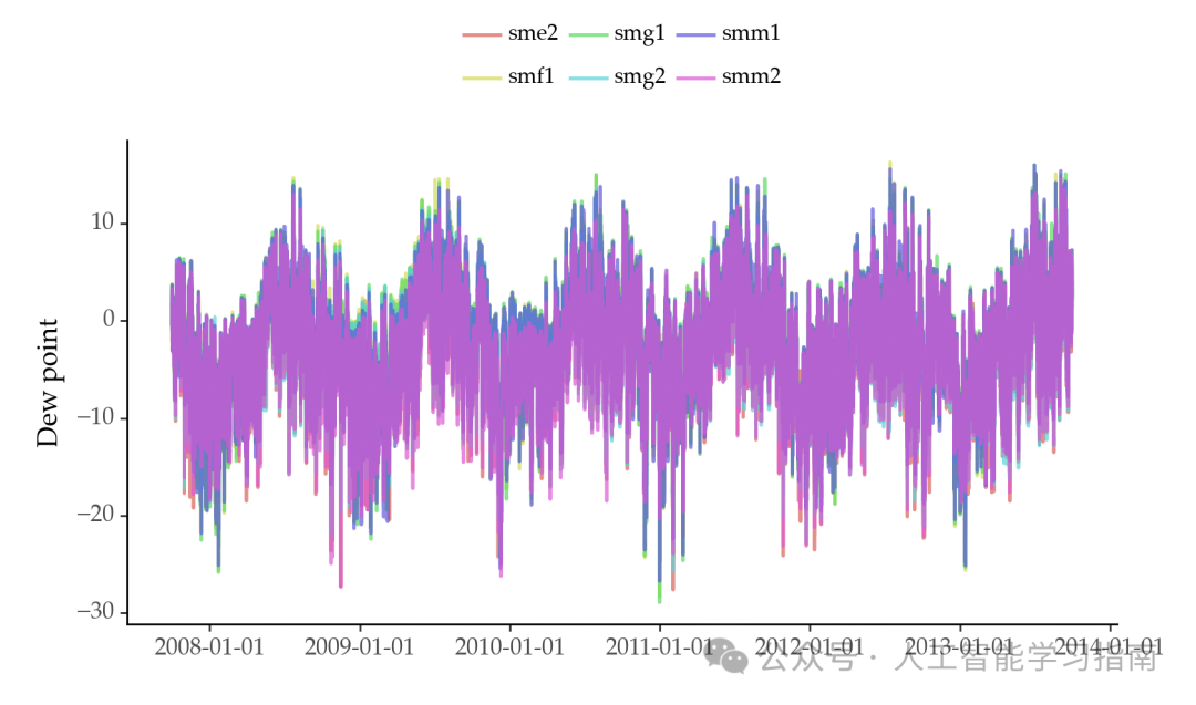 时空数据是多元时间序列的一种特殊情况,这类数据集涉及在多个地点对某个变量(如露点温度)进行观测。