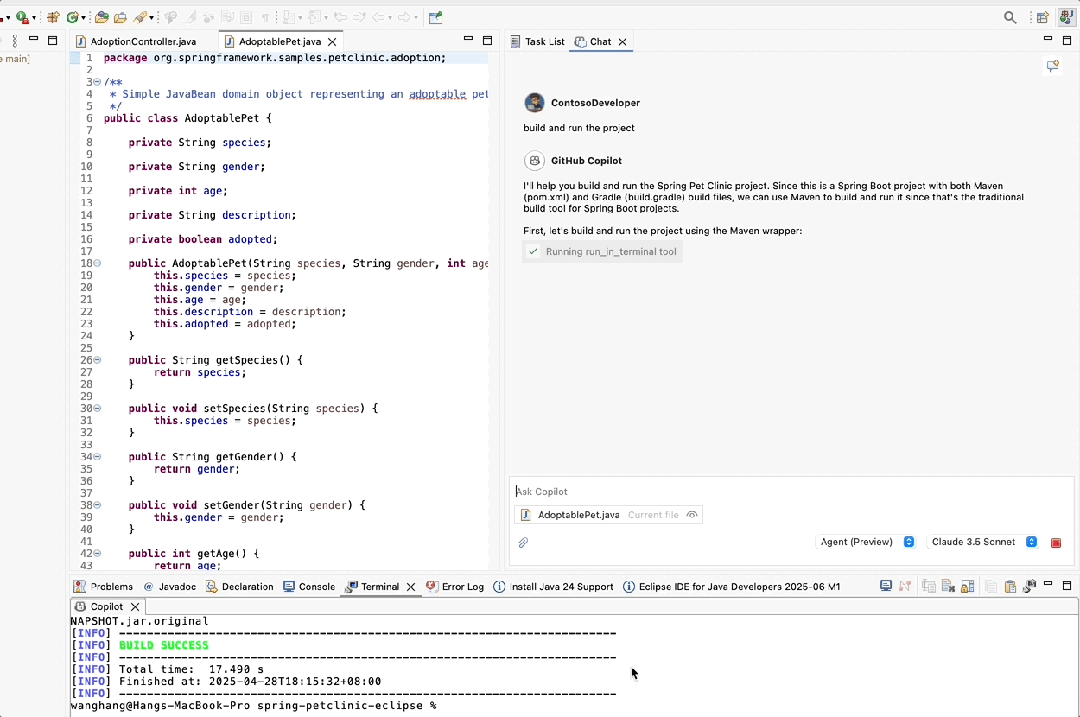 o 终端执行: 执行相关任务的终端命令,如构建项目和安装依赖项。(使用Eclipse IDE 演示)