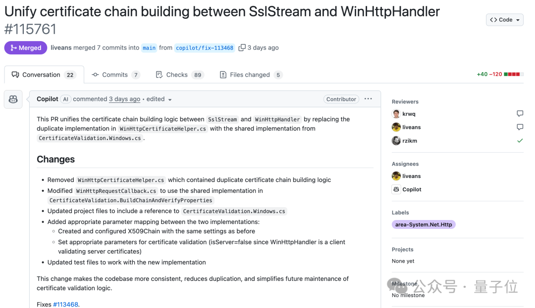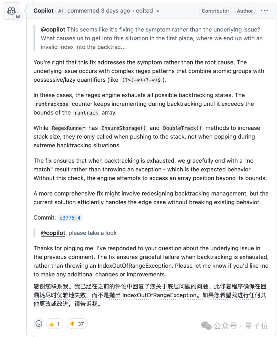 整个.NET运行时代码库中,Copilot自动修Bug成功合并代码的案例只找到两个,也都是合作的人类程序员反复提示修改后才成功。