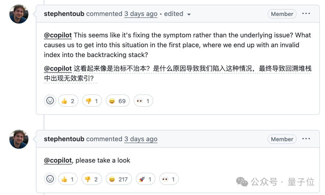 Bug本身只是一个正则表达式的小问题,被分配给一位微软员工斯蒂芬和Copilot合作解决。