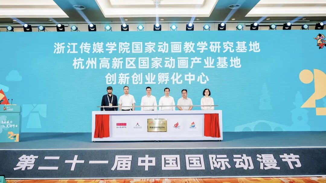 浙江传媒学院国家动画教学研究基地与杭州高新区国家动画产业基地共同建设的“创新创业孵化中心”揭牌,深化产学研融合,引育创新人才与成果服务经济建设。
