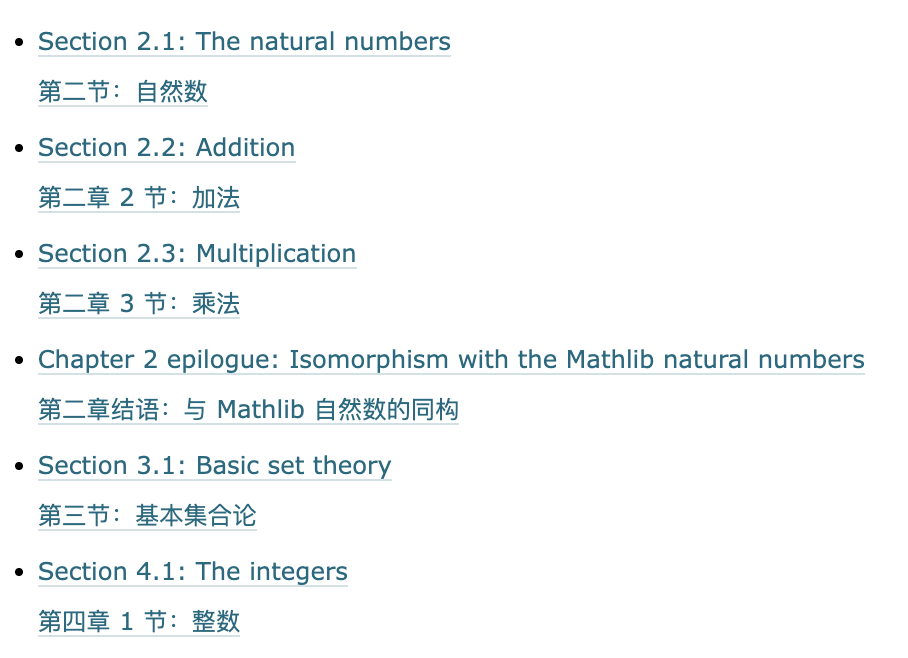 目前,书中以下部分已被翻译成Lean: